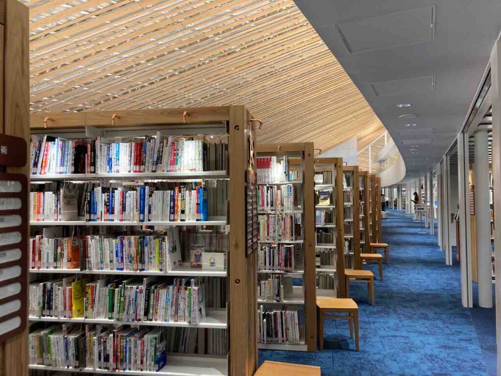 書架間も広くとってます。さすが県立だけ館内広く、ゆとりがありますね。